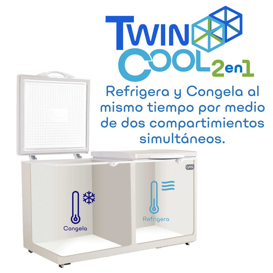 Mitad congela, mitad enfría: El único dual del mercado. Cuenta con dos compartimientos totalmente separados para que en uno puedas almacenar productos congelados y en el otro productos refrigerados.
