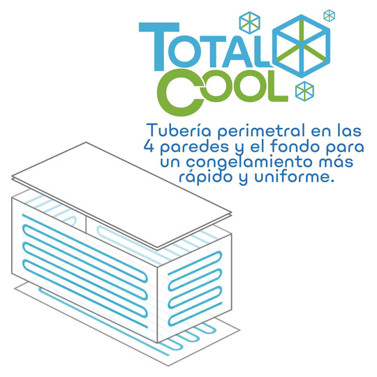 60% más tubería generando frío desde las cuatro paredes y el fondo del equipo. La tubería interna recorre todo el perímetro del congelador, incluso el suelo. Esto significa que no dejan un solo espacio sin enfriar. Solo los congeladores GRS ofrecen cobertura máxima y temperatura óptima.