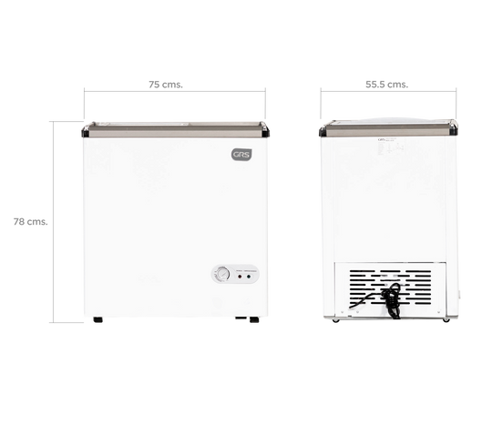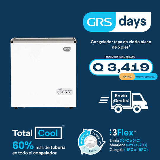 GRS te ayuda a vender más con el versátil congelador GS 150 de 5 pies³ con sus puertas de vidrio corredizas, ya que es ideal para exhibir tus productos y que tus clientes puedan abrirlo y escoger el producto que deseen. Además, GRS se ocupa de la seguridad de tu inversión pues las puertas cuentan con una cerradura para dejarlo con llave. Esto es sumamente valioso si tu puesto o tienda está en un mercado o en lugar público.