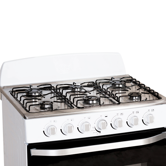 El modelo 30GM2, con seis quemadores de diferente capacidad, top de acero inoxidable, panel trasero sellado, comal porcelanizado, encendido eléctrico, luz en el horno y parrillas de alambrón vertical, y horno con parrillas auto deslizables, te da muchos más beneficios.