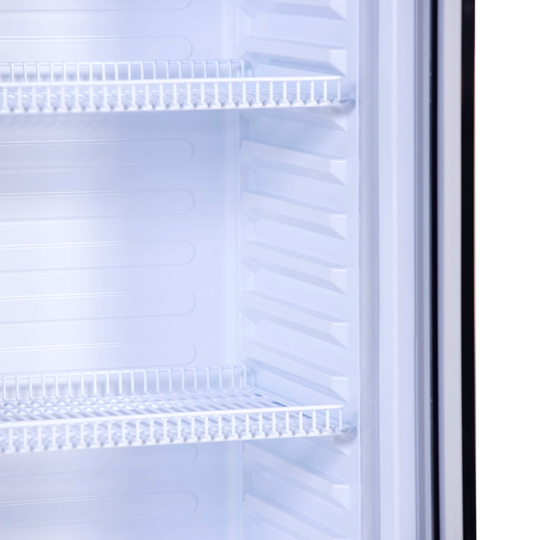 El modelo GLS 350BWA, cuenta con puerta con cerradura y cuatro parrillas de alambrón ajustables las que, no sólo son más resistentes sino permiten la circulación del frío de forma uniforme, haciendo más eficiente el consumo de energía. Además, nuestros equipos tienen una posición flexible de parrillas lo que te permite colocarlas a niveles de altura óptimos para almacenar tus productos.